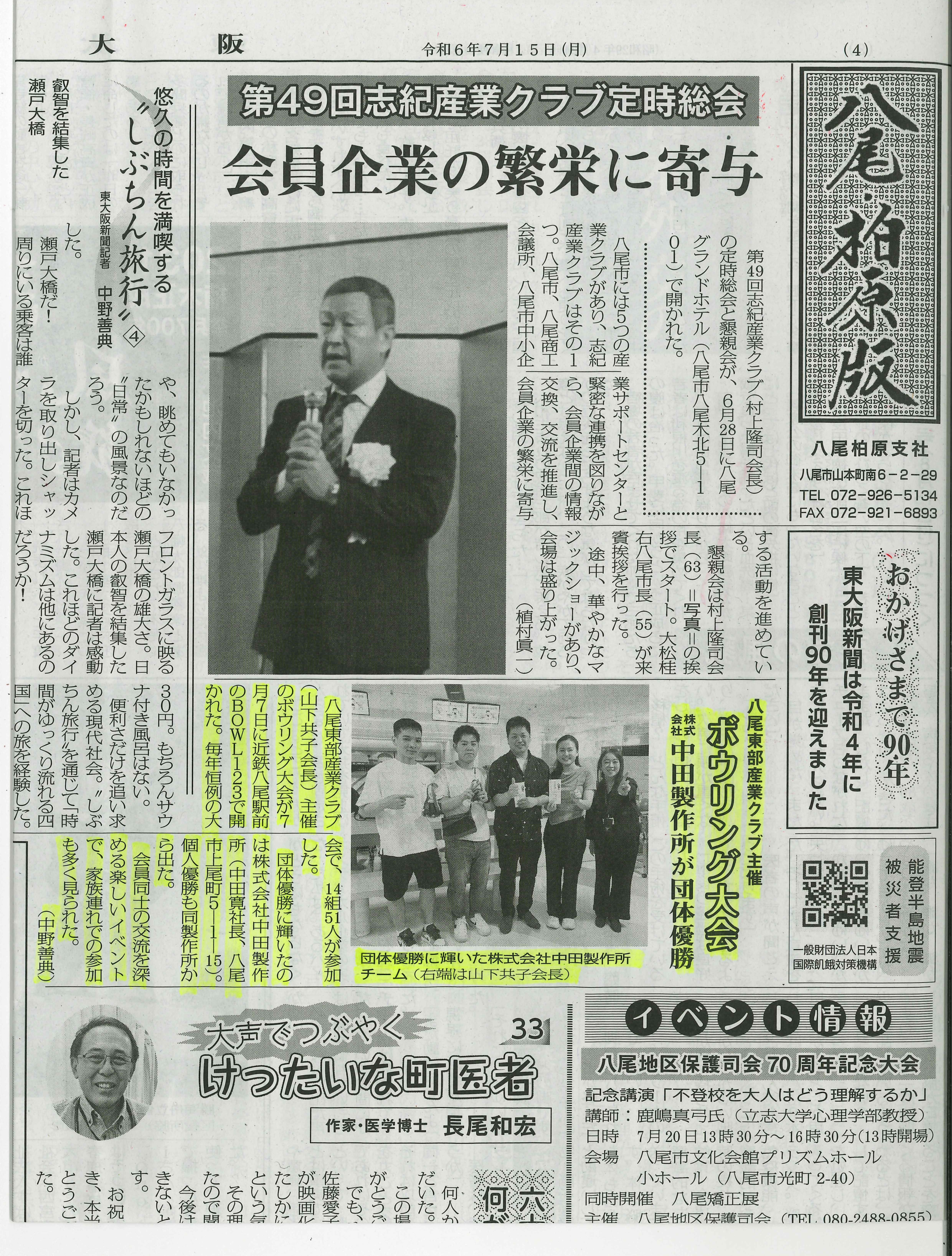 | 2024.7.15 | 東大阪新聞八尾・柏原版に掲載されました |